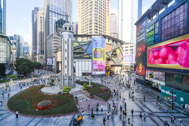 游客在重庆市渝中区解放碑商圈休闲(2024年8月21日摄)。新华社记者 王全超 摄