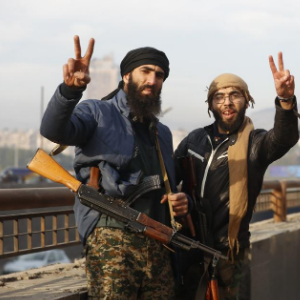 这是12月8日在叙利亚首都大马士革拍摄的武装人员。新华社发