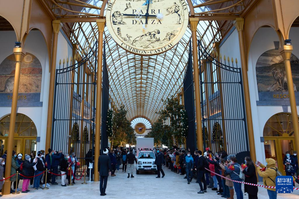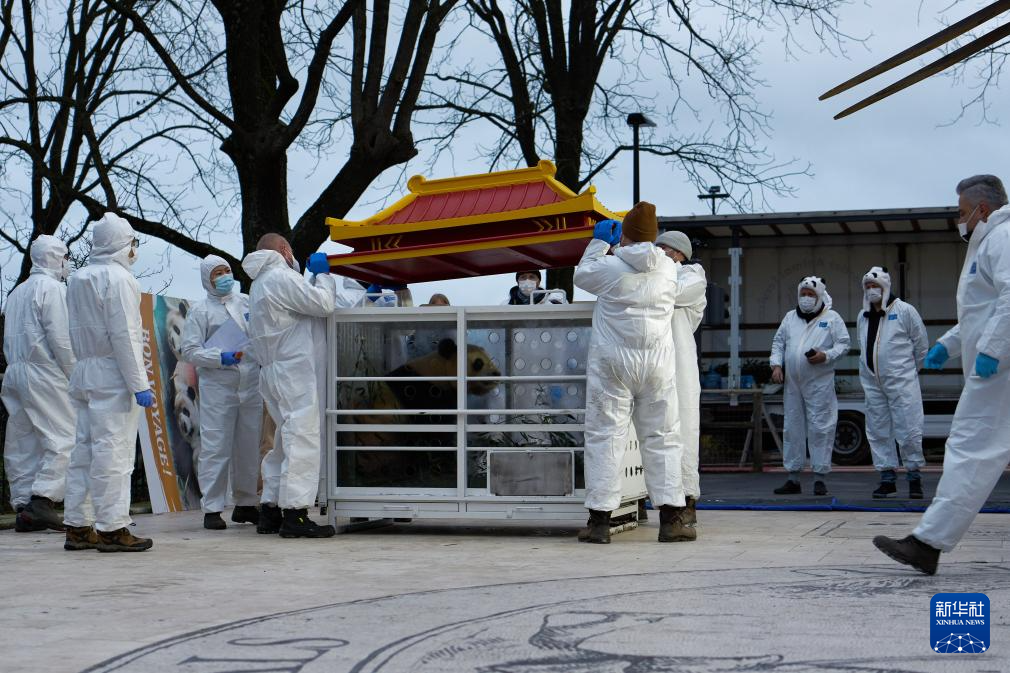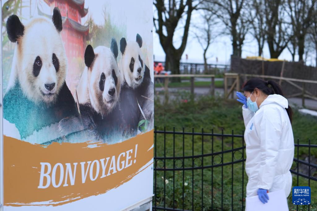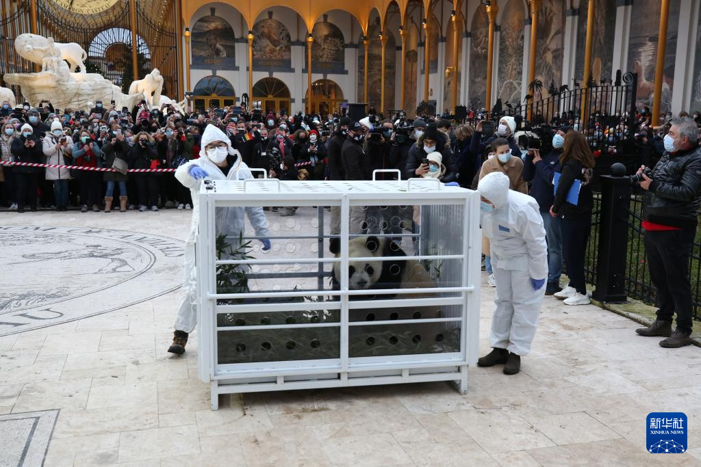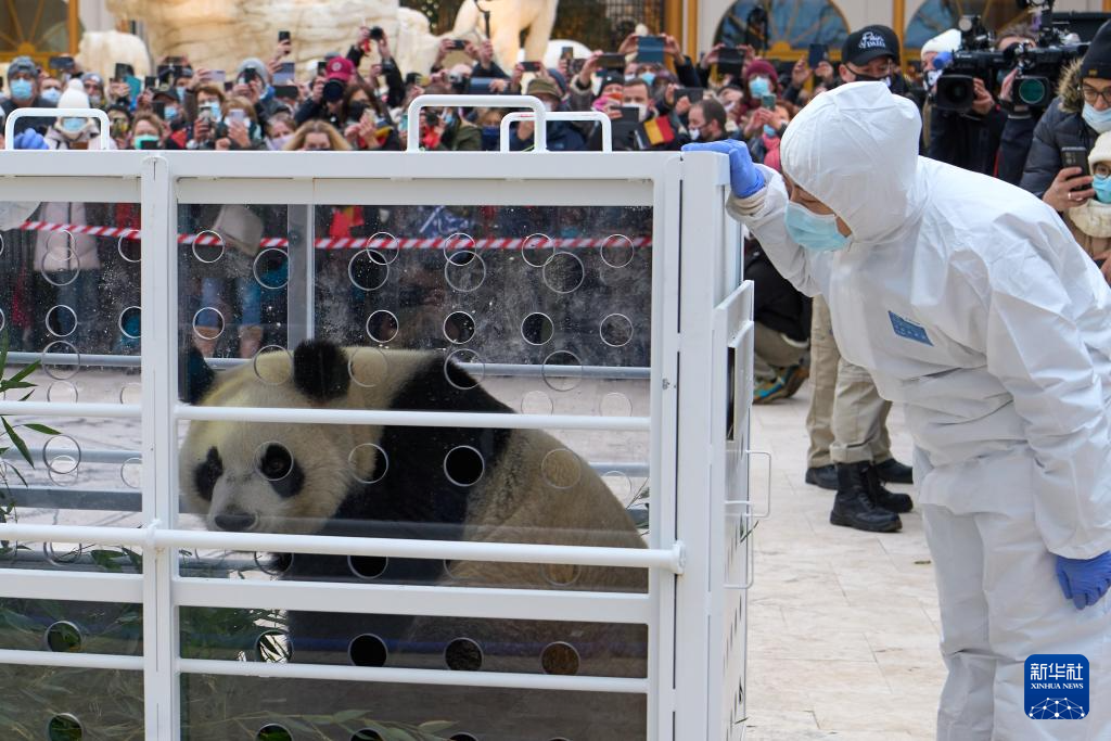 12月10日,在比利时布吕热莱特的天堂动物园,人们送别启程回国的大熊猫。新华社记者 赵丁喆 摄