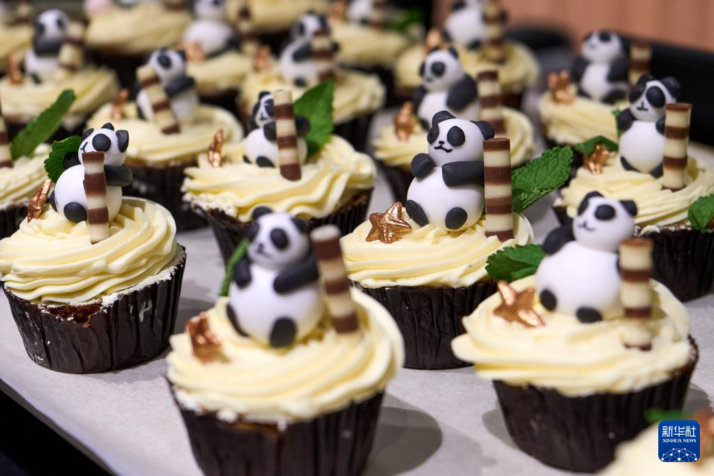这是12月10日在比利时布吕热莱特的天堂动物园拍摄的大熊猫蛋糕。新华社记者 孟鼎博 摄