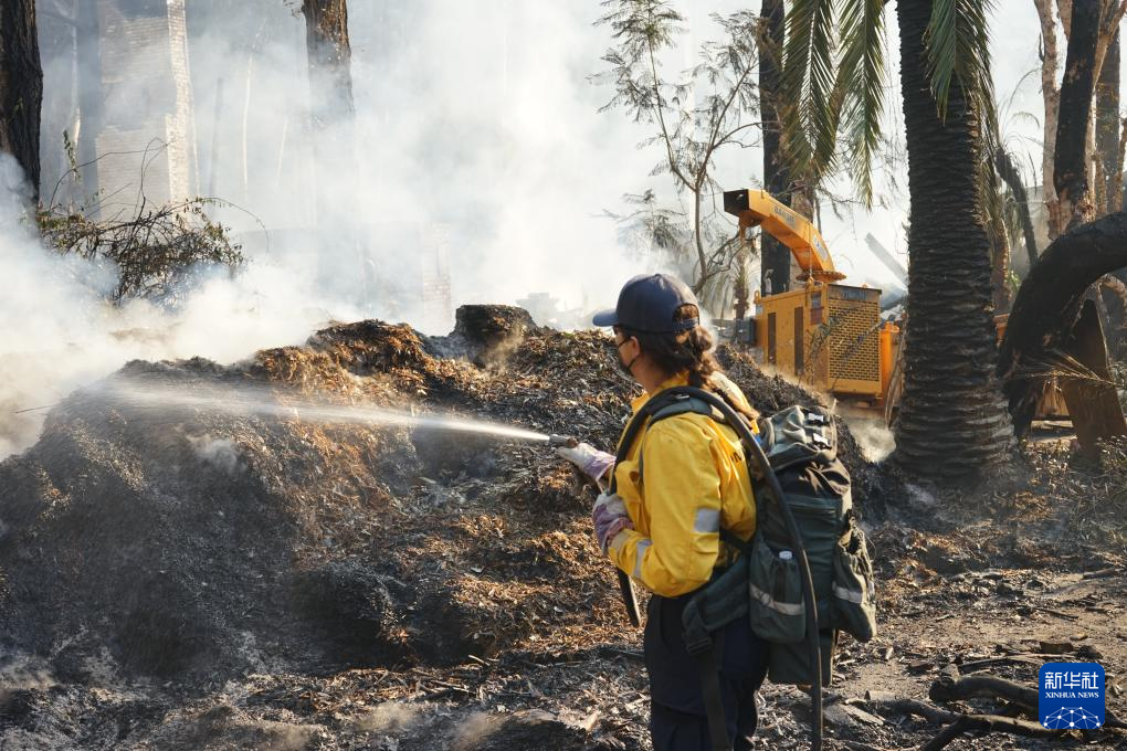 12月10日,燃气公司工作人员在美国加利福尼亚州洛杉矶县马里布一处过火区域工作。新华社发(邱晨 摄)