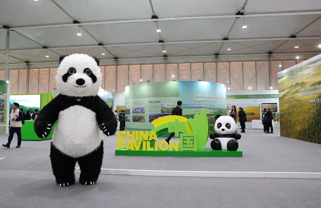 12月2日,在沙特阿拉伯利雅得,人们参观联合国防治荒漠化公约大会中国馆。新华社记者王东震摄