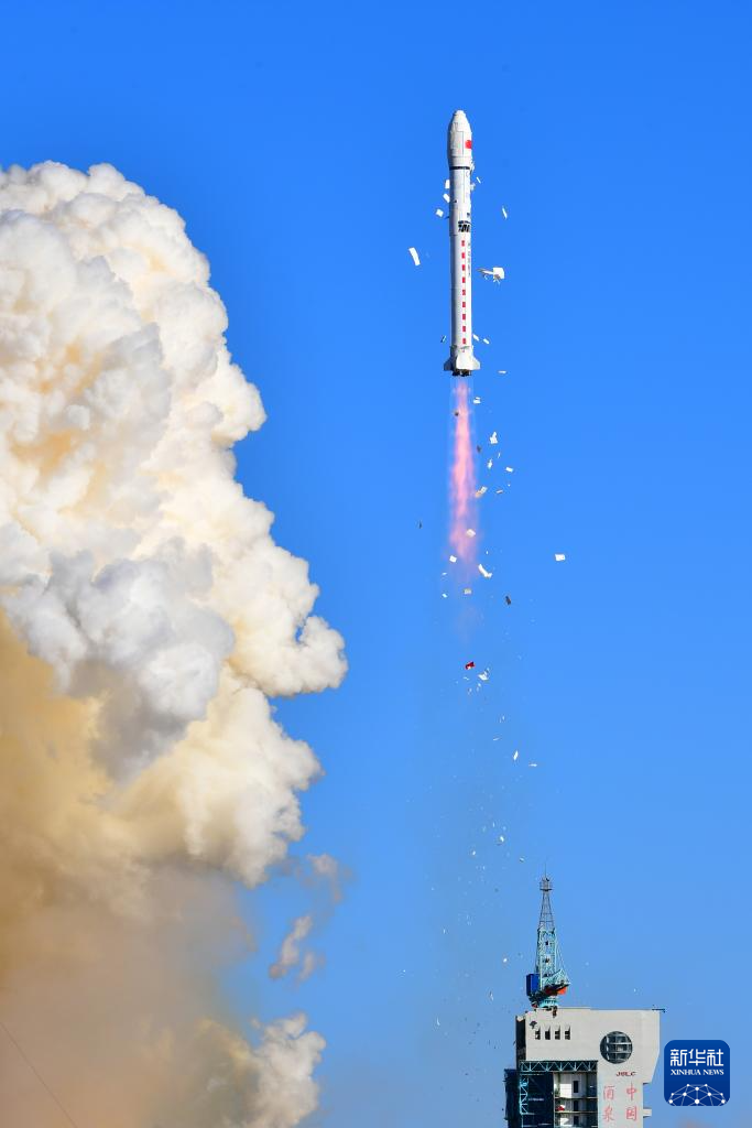 12月12日15时17分,我国在酒泉卫星发射中心使用长征二号丁运载火箭/远征三号上面级,成功将高速激光钻石星座试验系统发射升空,5颗卫星顺利进入预定轨道,发射任务获得圆满成功。新华社发(汪江波摄)