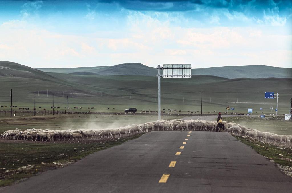 夏日,在内蒙古呼伦贝尔大草原,羊群穿过公路(资料图)。新华社记者 兰红光 摄