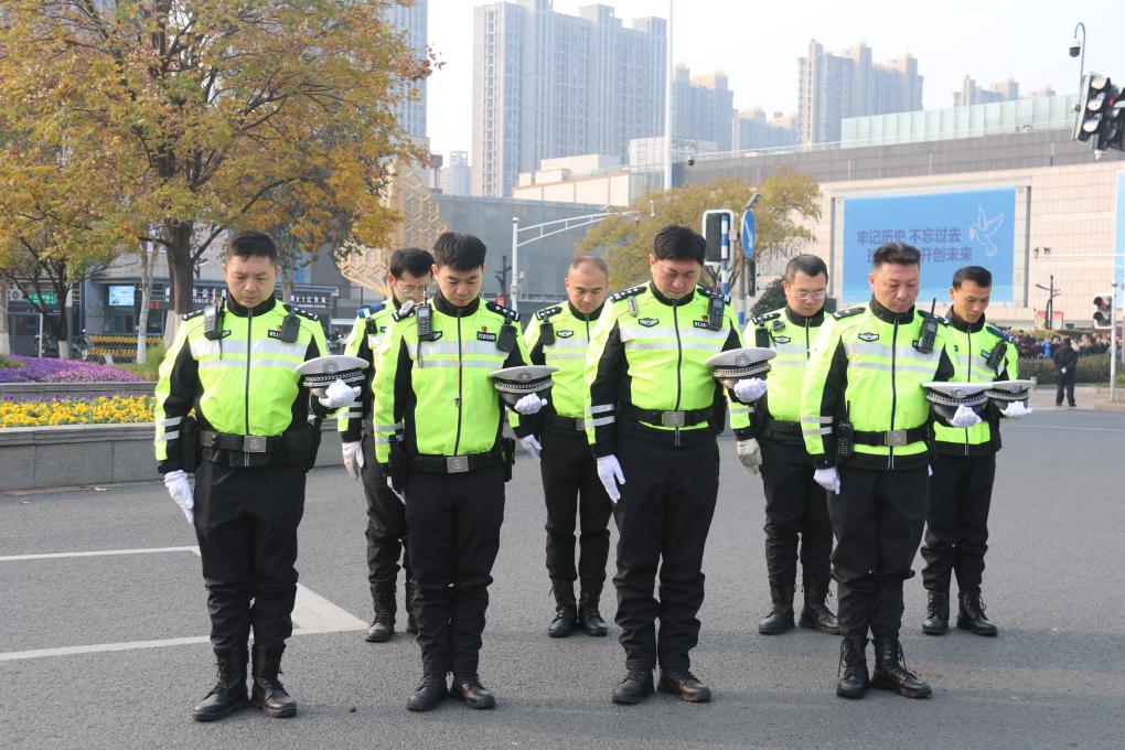 2024年12月13日,南京街头,交警低首默哀。(新华社发)