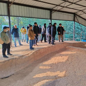 这处遗址位于衢江区云溪乡车塘村石角山自然村,被命名为石角山古城遗址。在12月12日于当地举行的石角山古城遗址考古发掘座谈会上,浙江省文物考古研究所浙西工作站站长、石角山古城遗址考古现场负责人张森介绍说,2020年至2021年,他们在金(华)衢(州)地区开展先秦遗存考古调查勘探,在石角山发现了壕沟、台地等迹象,判断其可能为一处城址。