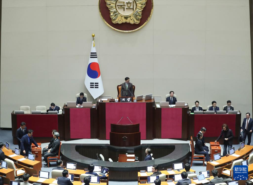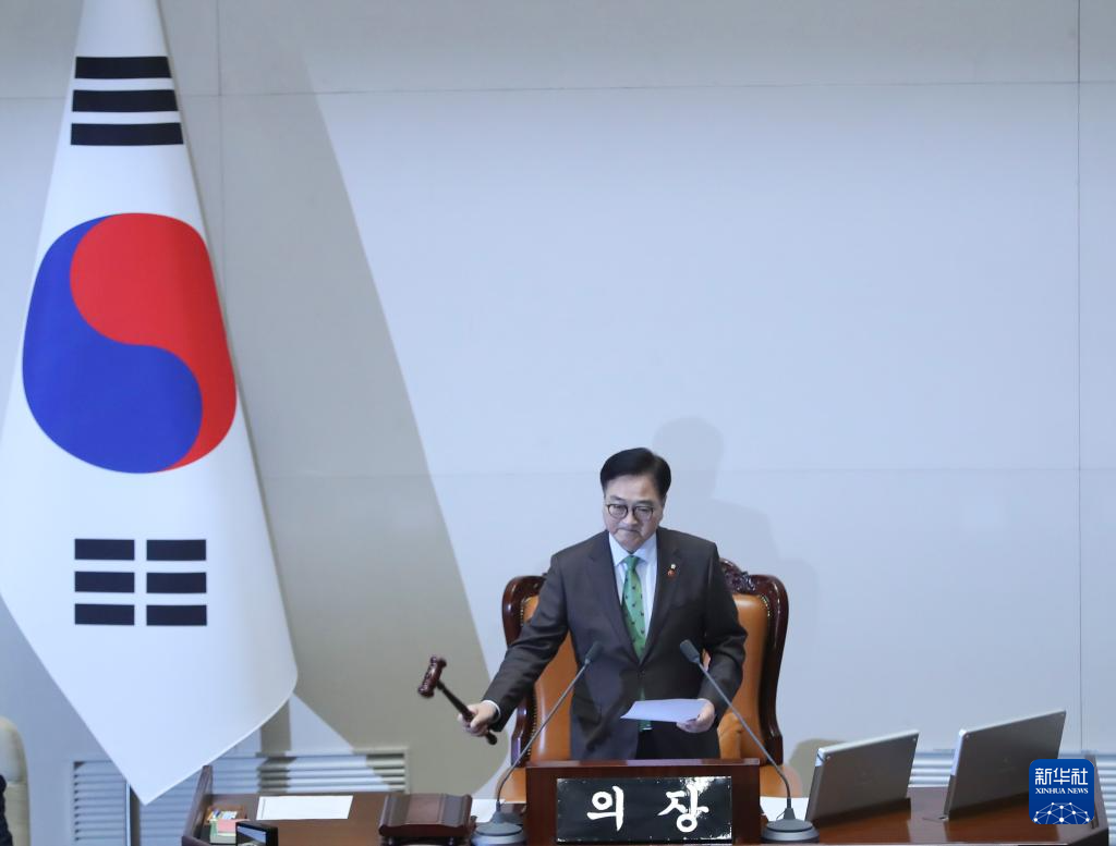 12月14日,在韩国首尔,韩国国会议长禹元植宣布弹劾动议案表决通过。新华社记者 姚琪琳 摄