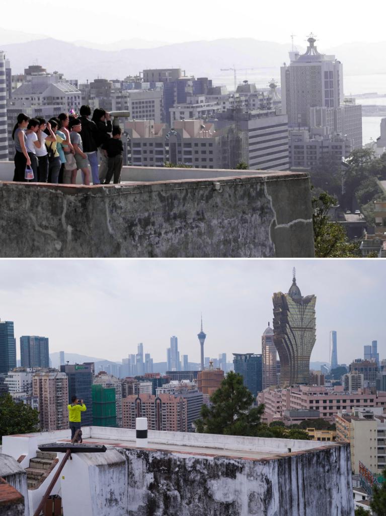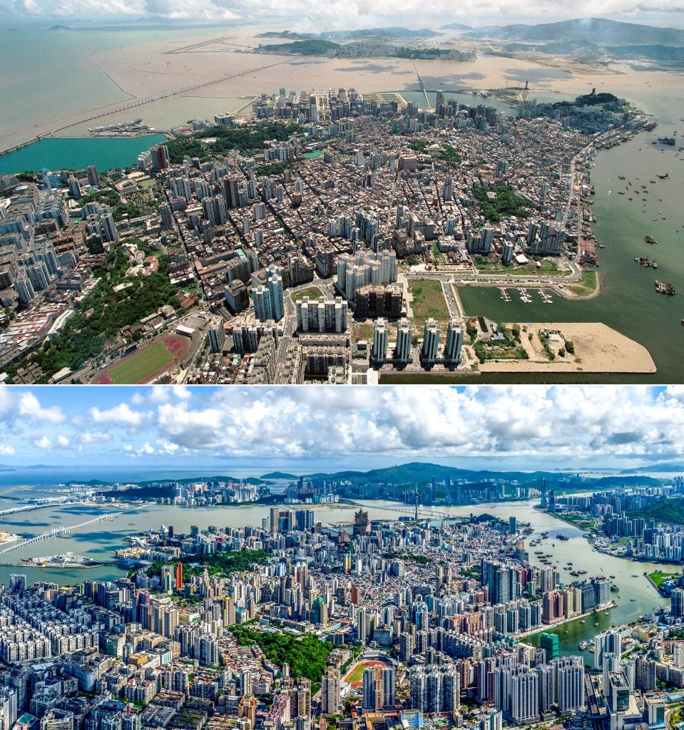 俯瞰澳门(上图摄于1999年,下图摄于2024年)。