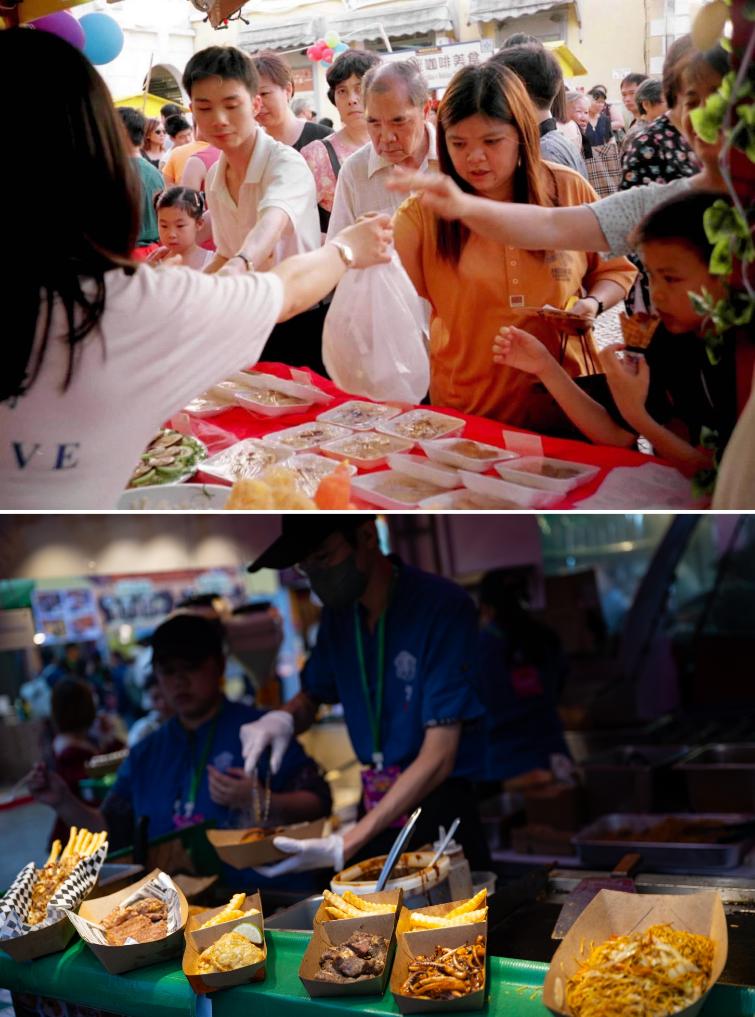 上图:2000年7月,游客在第一届澳门美食节上购买食物; 下图:2024年11月24日,工作人员在第二十四届澳门美食节烹调食物。