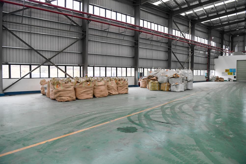 广西桂物再生资源有限公司一处堆放拆解后危险废物的仓库(12月6日摄)。受产能不饱和等因素影响,仓库仍有较多存放位置。