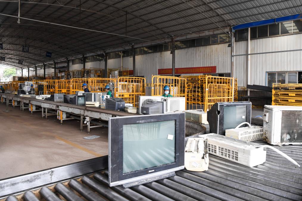 受产能不饱和等因素影响,广西桂物再生资源有限公司的一条拆解线处于轮流排工状态,待回收的废旧家电达到一定数量后再开工拆解(12月6日摄)。