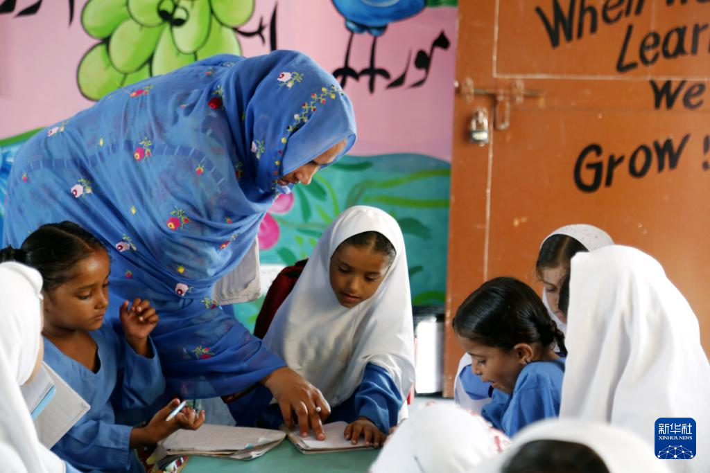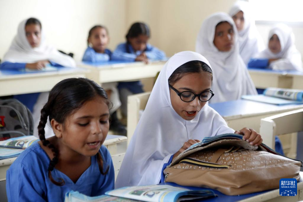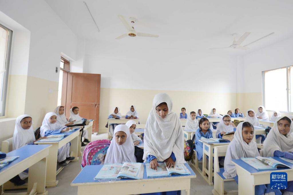 9月16日,在巴基斯坦瓜达尔的中巴瓜达尔地区法曲尔公立学校,当地学生在上课。新华社发(艾哈迈德·卡迈勒 摄)