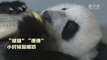 “健健”“康康”小时候爱喝奶。长到三岁时,它们每天能“消灭”55公斤竹子。