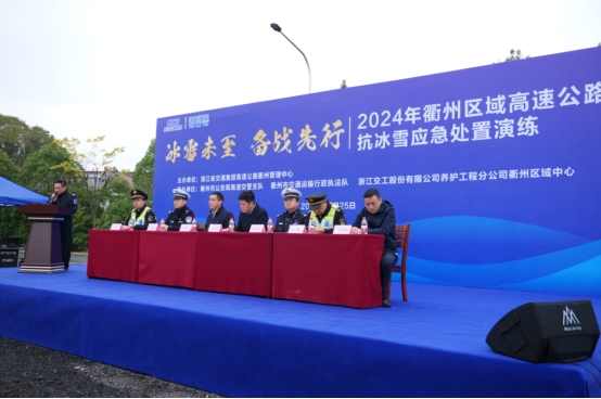 冰雪未至,备战先行。为扎实做好抗冰雪准备工作,努力降低冰雪天气影响,切实提高“一路多方”现场处置能力,11月25日,浙江省交通集团高速公路衢州管理中心联合衢州市公安局高速交警支队、衢州市交通运输行政执法队、浙江交工股份有限公司养护工程分公司衢州区域中心开展了2024年衢州区域高速公路抗冰雪应急处置演练。