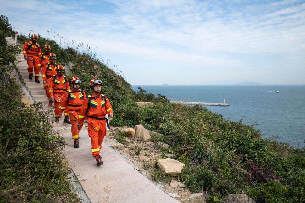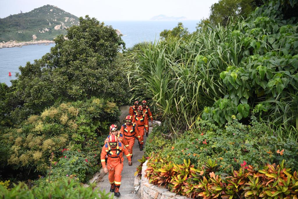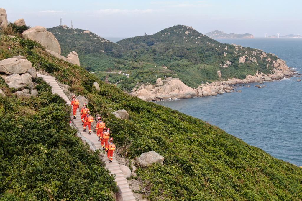 12月16日,东澳岛专职消防救援站消防员进行森防巡查。