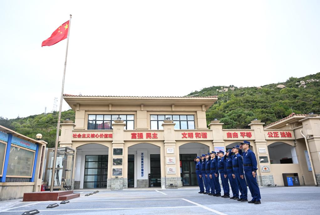 12月16日,东澳岛专职消防救援站消防员向国旗敬礼。