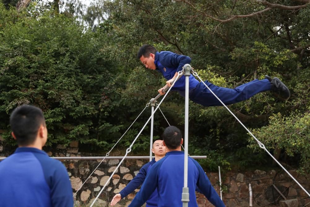 12月16日,东澳岛专职消防救援站消防员进行体能训练。