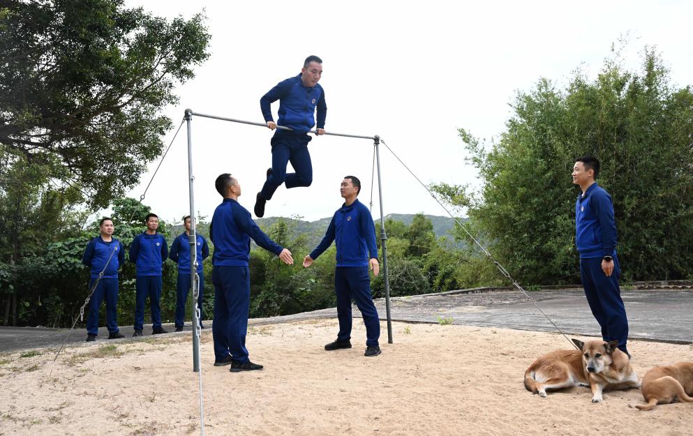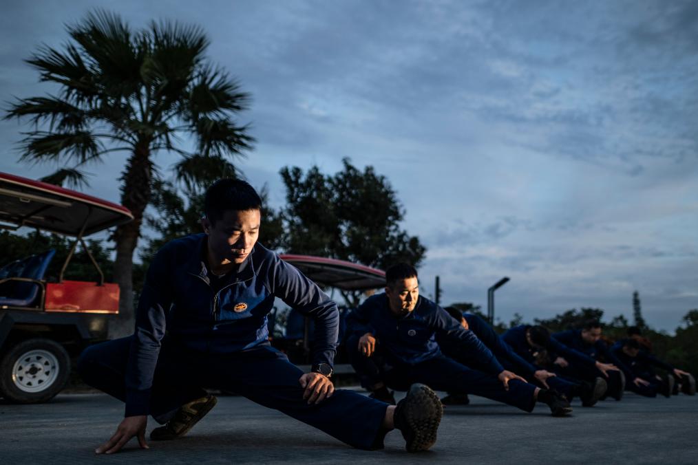 12月16日,东澳岛专职消防救援站消防员进行晨练。