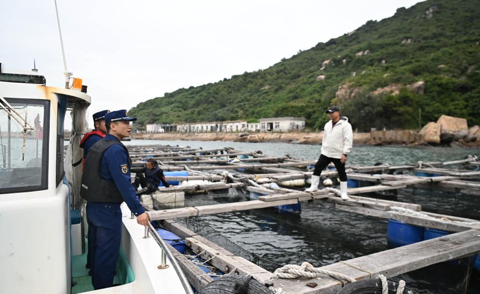 12月16日,东澳岛专职消防救援站消防员在白沥岛走访渔民。
