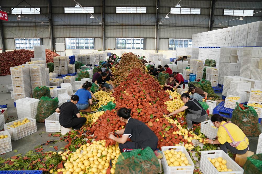 安岳县一企业车间内等待被分拣的柠檬。新华社记者 胥冰洁 摄
