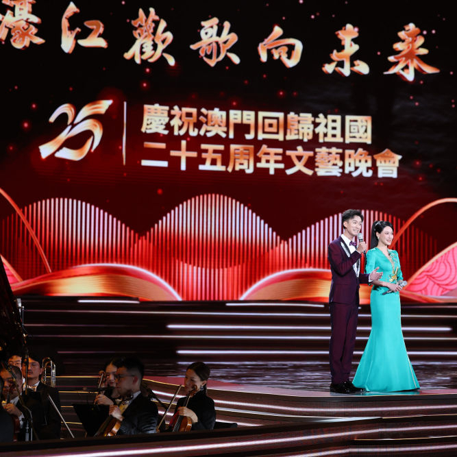 庆祝澳门回归祖国25周年文艺晚会12月19日晚在澳门东亚运动会体育馆举行。