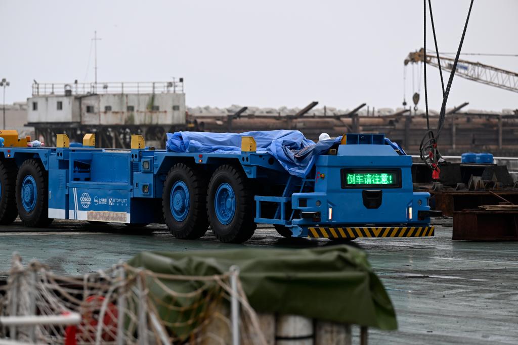 在码头操作区,具备自动驾驶技术的电动集装箱卡车行驶安静轻巧、路线精准。这些无人车将实现全自动运行,提高集装箱作业效率。
