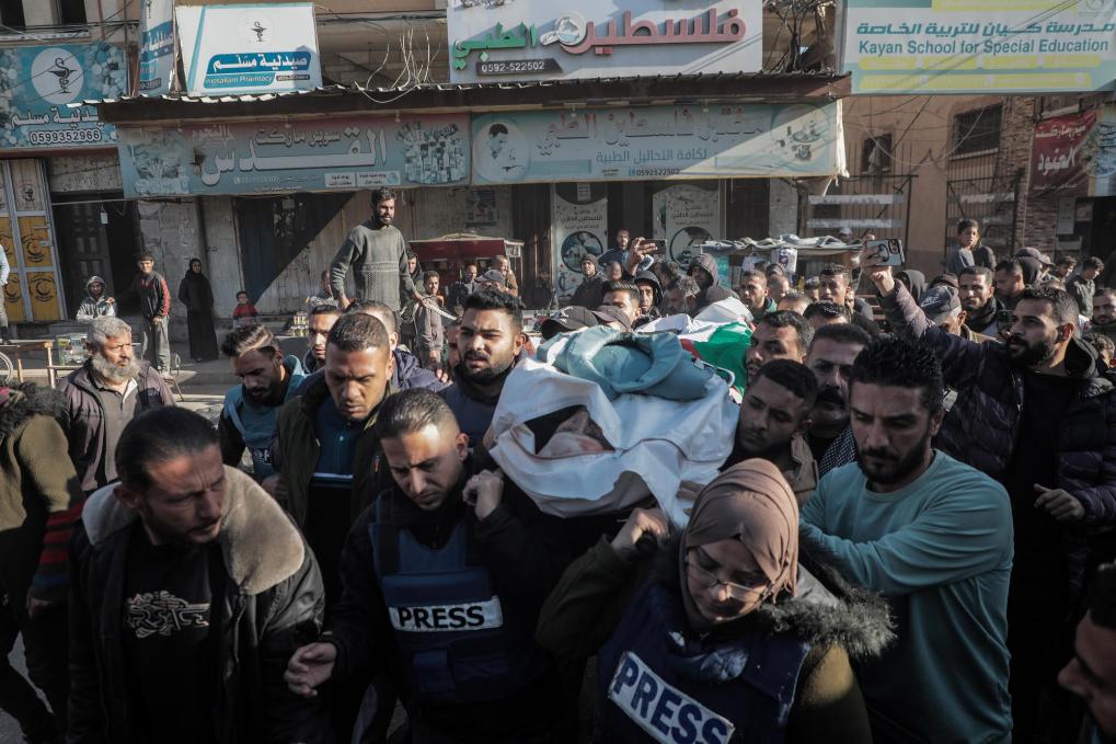 12月16日,人们在加沙地带中部城市代尔拜拉赫为遇难记者艾哈迈德·卢送葬。新华社发(里泽克·阿卜杜勒贾瓦德摄)