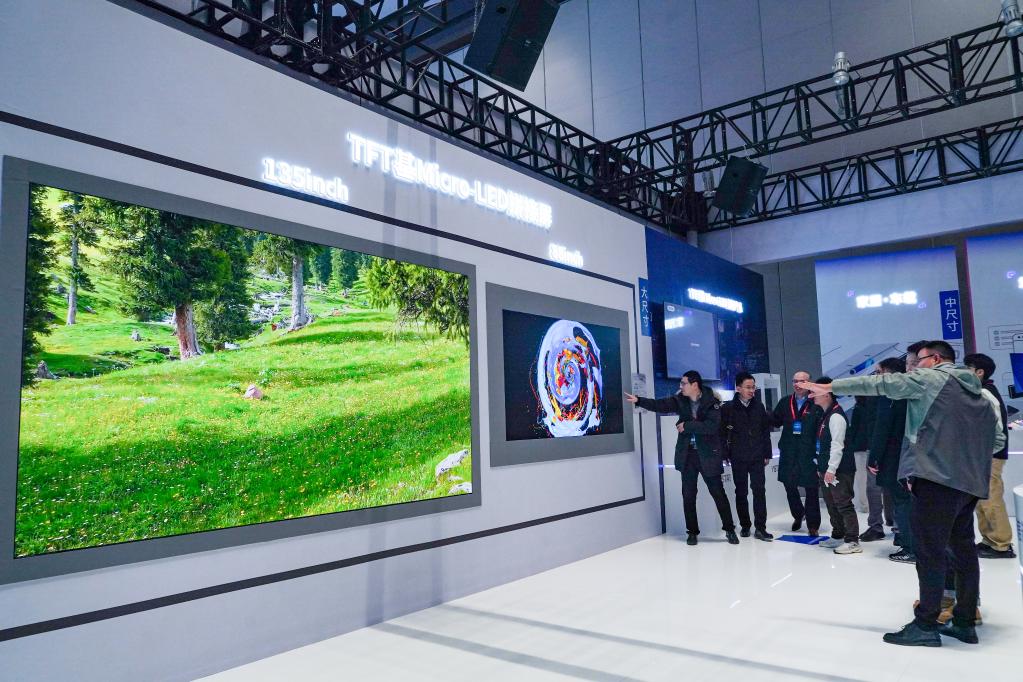 此次大会上,还展出了多款“四川造”的新型屏——辰显光电的国内首款135英寸TFT基Micro-LED拼接屏,四川长虹的AI百英寸UMAX巨幕电视……不仅是“抬头可见”的大屏、超大屏,还有“低头在握”的手机屏,以及车载显示屏、智慧家居屏等等。