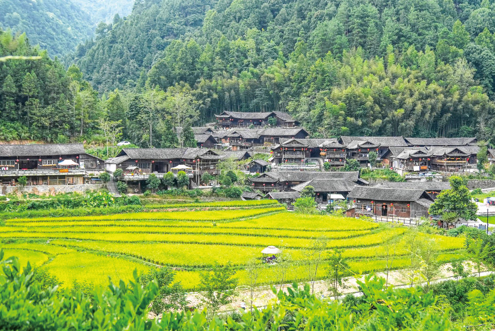 依山而建的彭家寨吊脚楼,与青山绿水有机融入,俨然成了一个活化的、动态的“土家泛博物馆”。