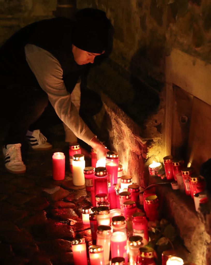 12月21日,在德国马格德堡,一男子为袭击事件遇难者点燃蜡烛。新华社记者杜哲宇