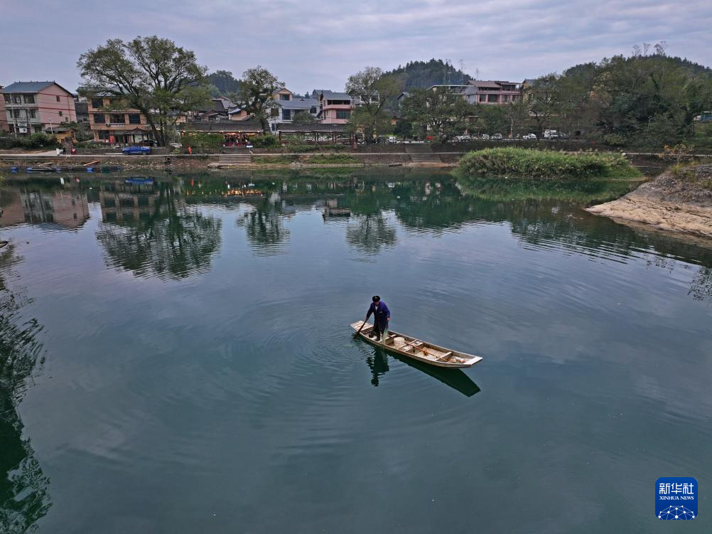 村民在广西柳州市融安县大将镇龙妙村龙妙屯浪溪江上捕鱼(12月17日摄,无人机照片)。