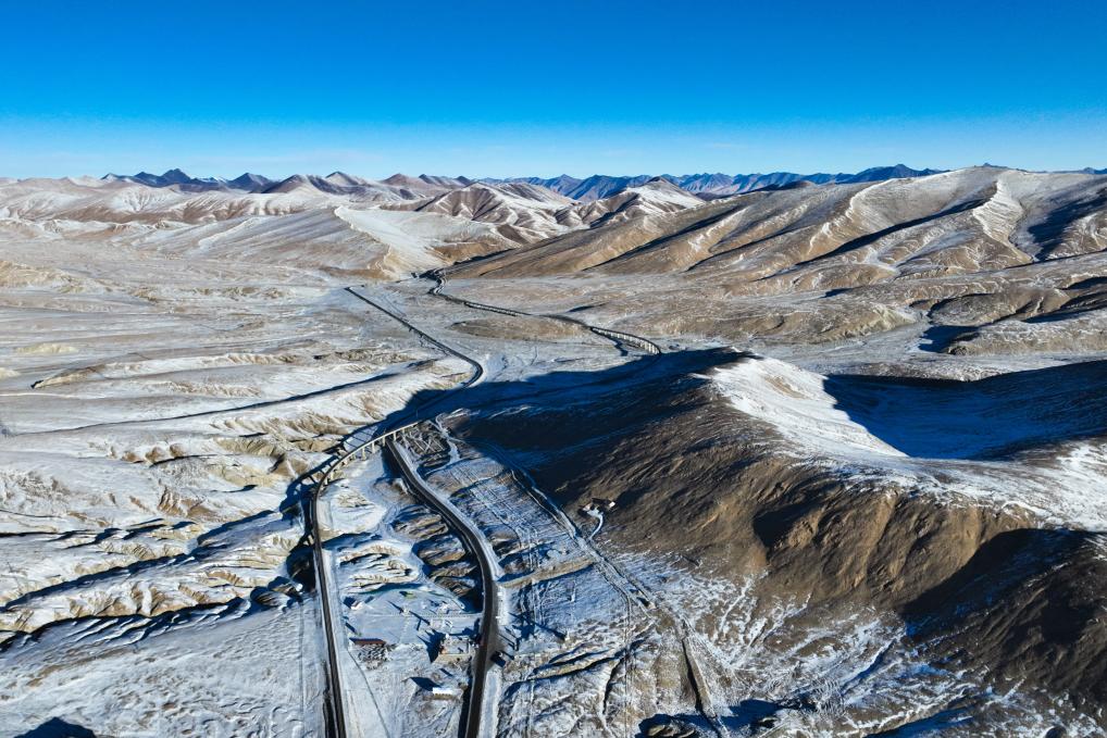 这是12月1日在开心岭拍摄的青藏公路与青藏铁路。新华社记者 张龙 摄