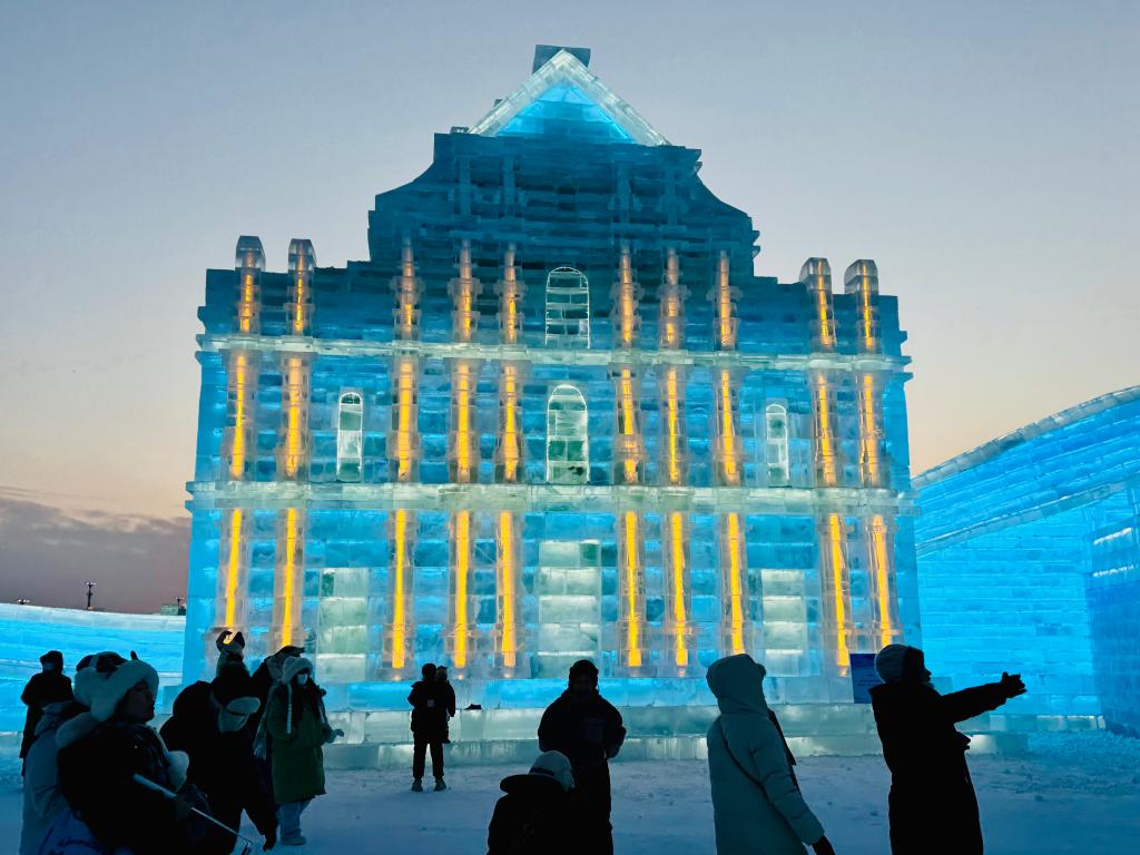“我一眼就看到了,雕刻得十分逼真!”赖女士说,自己很久之前就知道哈尔滨的冰雪文化特别有名,这次特意跟着旅行团亲眼见证。能在冰雪大世界看到家乡的建筑,让她感到惊喜而亲切。