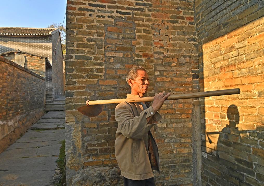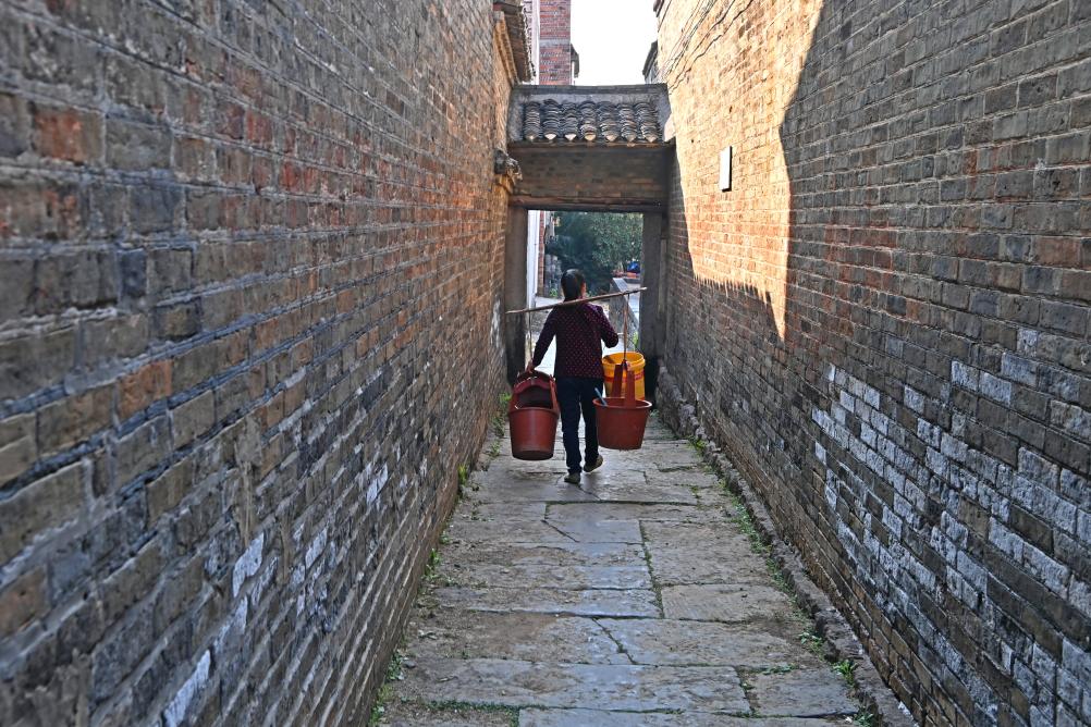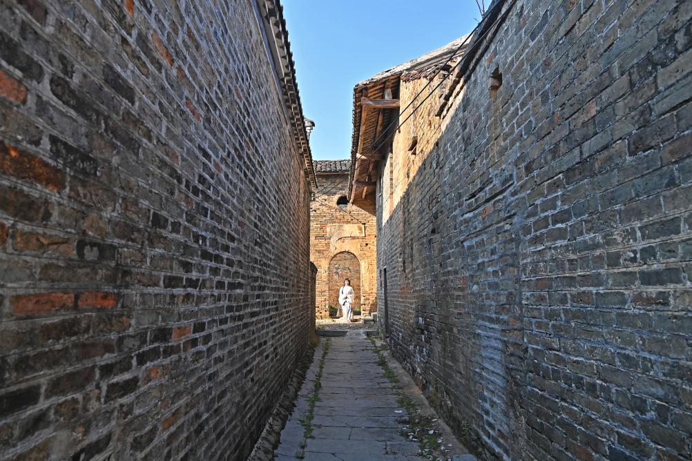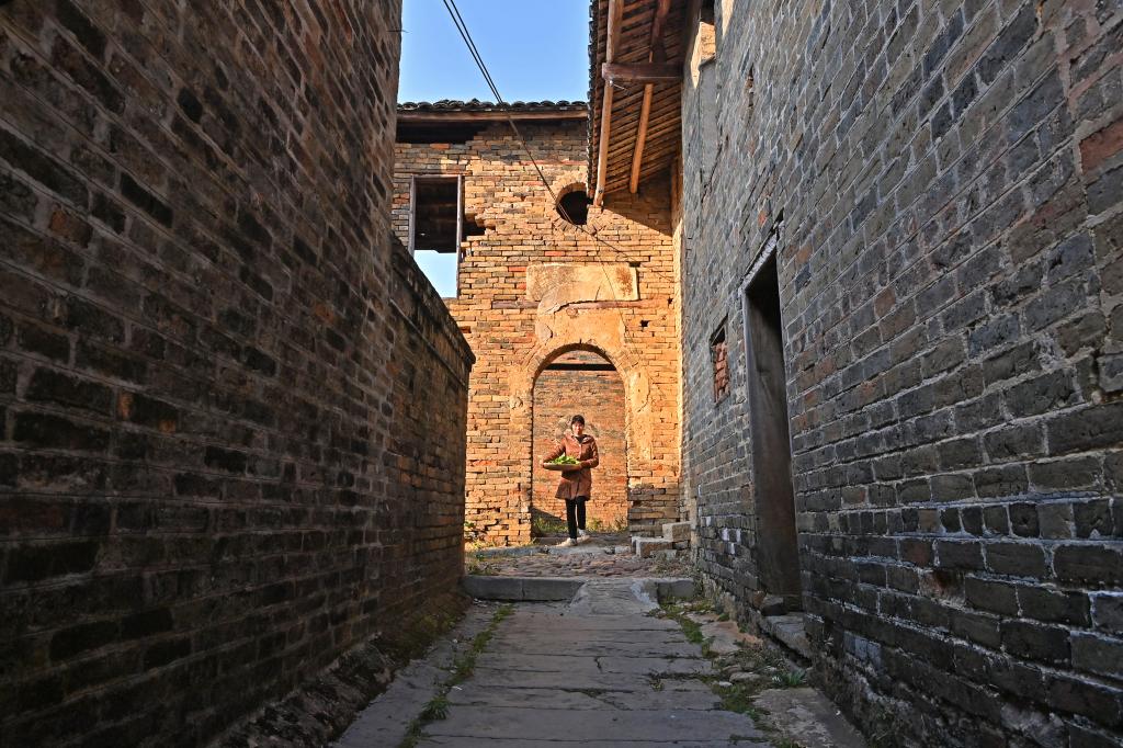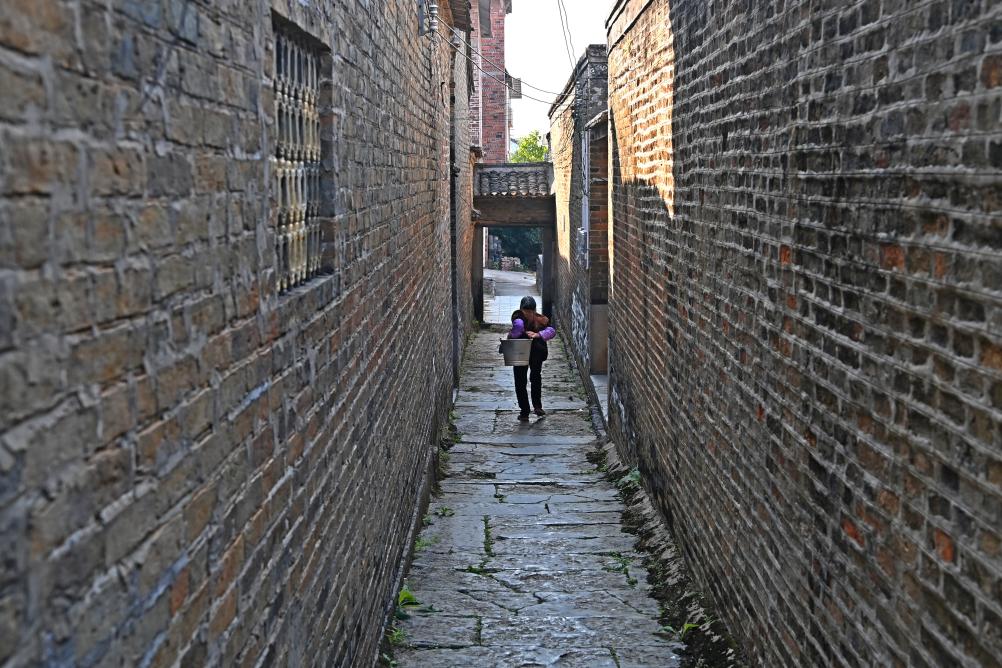 一名村民行走在广西来宾市金秀瑶族自治县桐木镇那安村龙腾屯的古巷(12月19日摄)。