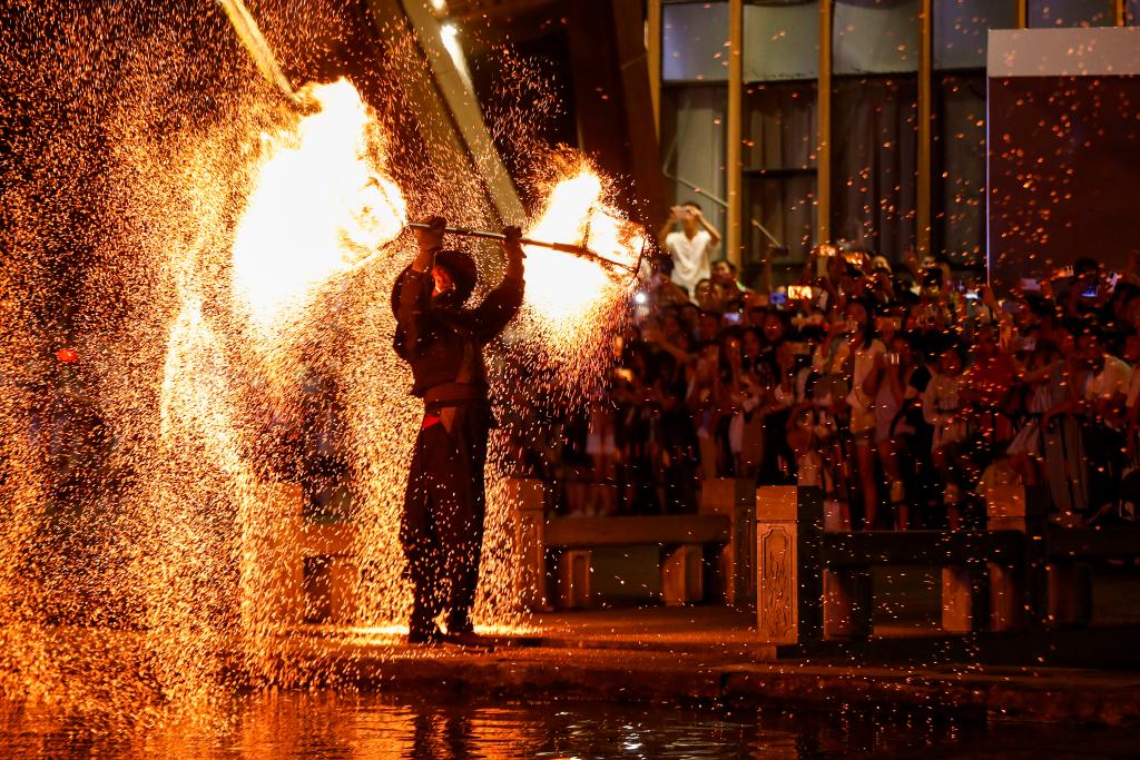 中秋假期,打铁花、炭花舞、火壶演艺……各类非遗展演及特色夜游项目精彩纷呈,与文旅的融合让时光长河里的非物质文化遗产重新焕发光彩,被越来越多的人了解和喜爱。