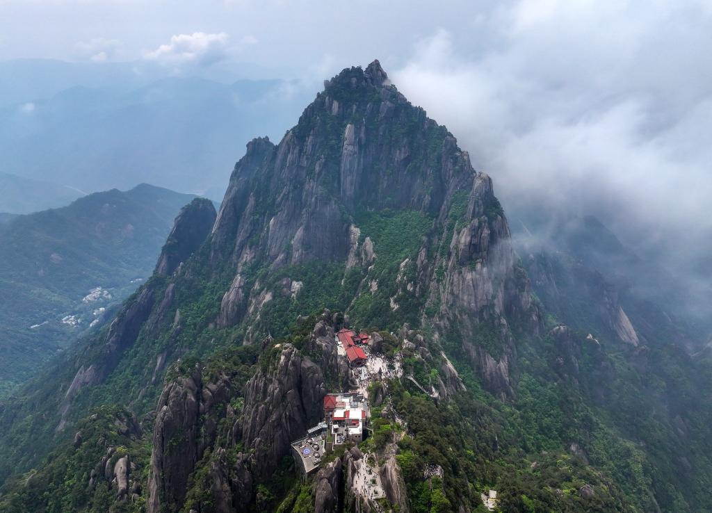黄山风景区天都峰景象(5月20日摄,无人机照片)。