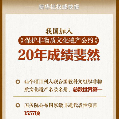 今年是我国加入联合国教科文组织《保护非物质文化遗产公约》20周年。