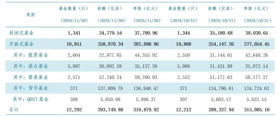 中国基金业协会日前发布的数据显示,截至2024年11月底,我国境内公募基金资产净值合计31.99万亿元。