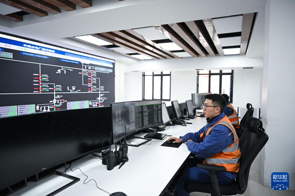 12月24日,羊曲水电站工作人员在中控室内值守。新华社记者 解统强 摄