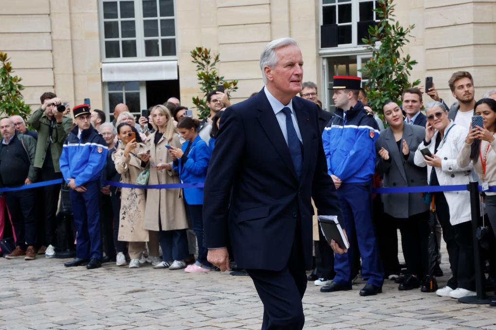 9月5日,在法国首都巴黎的总理府,米歇尔·巴尼耶出席与即将卸任的总理阿塔尔(未在画面中)的交接仪式。新华社发(亨利·施瓦茨摄)