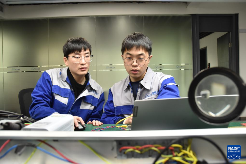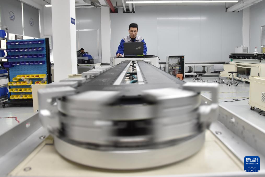 湖南凌翔磁浮科技有限公司研发人员在测试新产品(12月19日摄)。新华社记者 白田田 摄