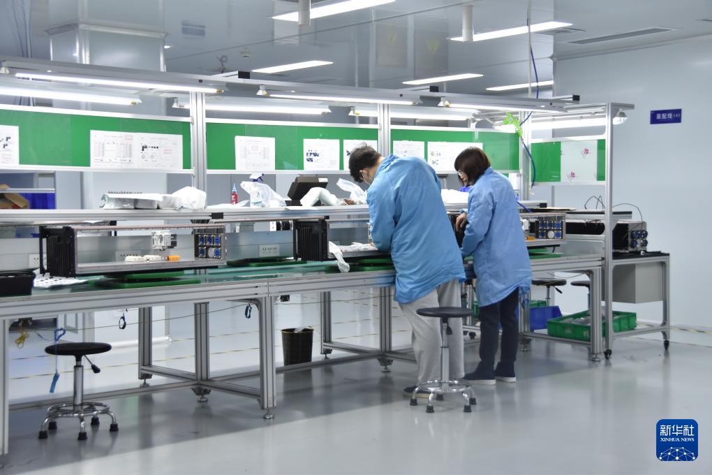 湖南凌翔磁浮科技有限公司工人在电气车间进行装配作业(12月19日摄)。新华社记者 白田田 摄