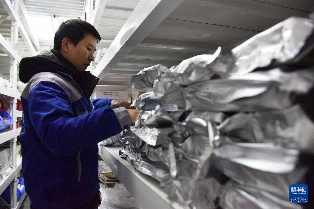 湖南凌翔磁浮科技有限公司仓库管理员在清点产品(12月19日摄)。新华社记者 白田田 摄