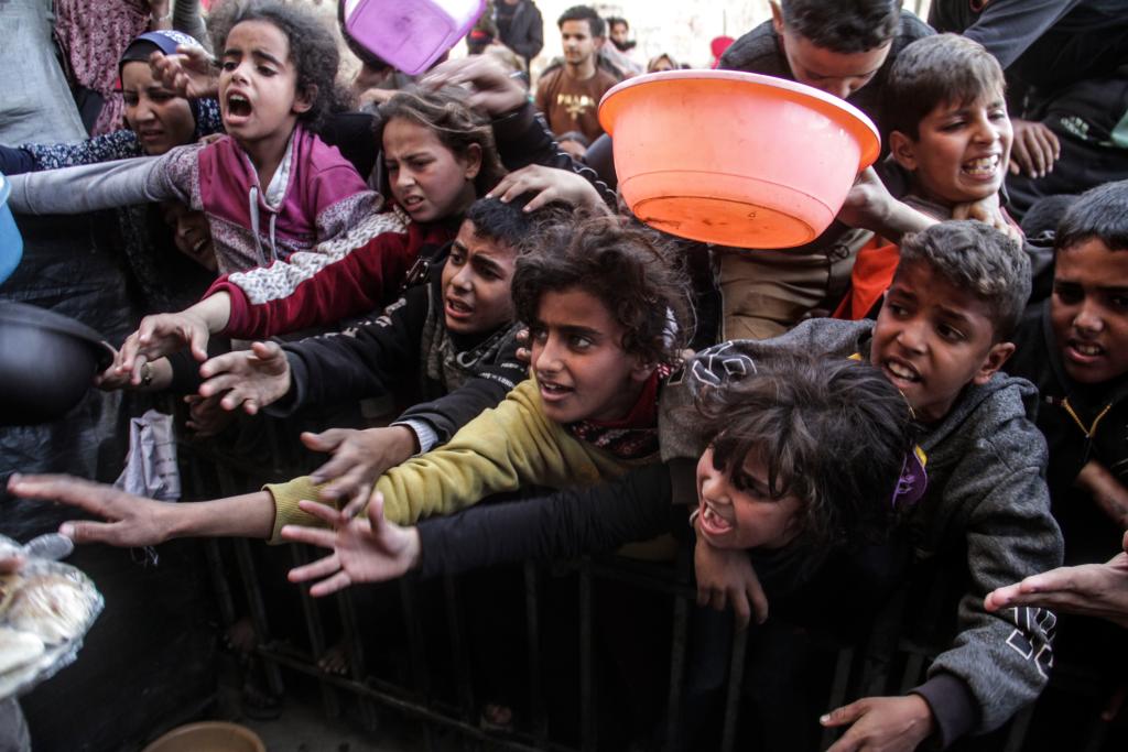12月23日,巴勒斯坦儿童在加沙城领取食物。新华社发(马哈茂德·扎基摄)
