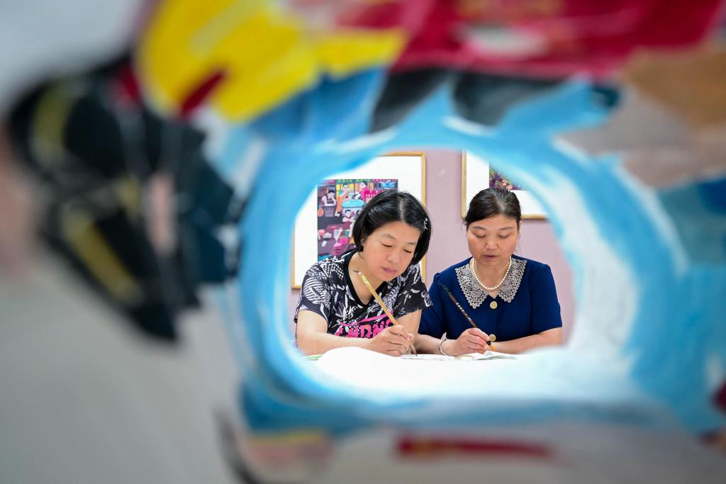 在洛阳市偃师区翟镇镇甄庄农民画研学实践中心,农民画师以独特视角展现乡村风貌,笔触间流露出对生活的热爱。当地在丰富农民文化生活的同时,发展“农民画+文创+旅游+研学”产业链,壮大村集体经济。