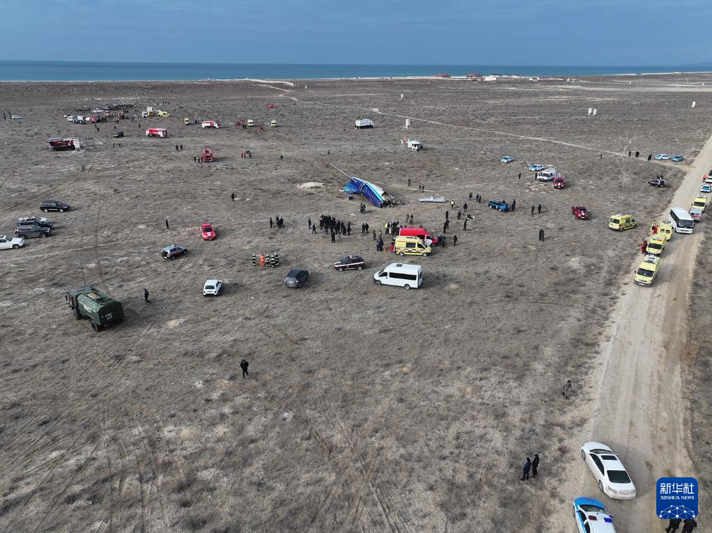 这是12月25日在哈萨克斯坦阿克套市附近拍摄的坠机现场。 新华社发(伊萨·塔任巴耶夫摄)