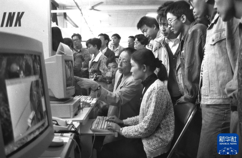 1995年,在天津“信息高速公路”展示会上,“信息高速公路”应用演示引起观众的关注。新华社发