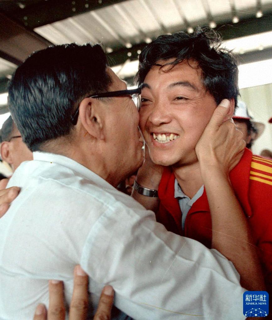 1984年7月29日,中国射击运动员许海峰(右)在美国洛杉矶举行的第23届夏季奥运会上夺冠,实现了中国体育史上“零”的突破。新华社记者 官天一 摄