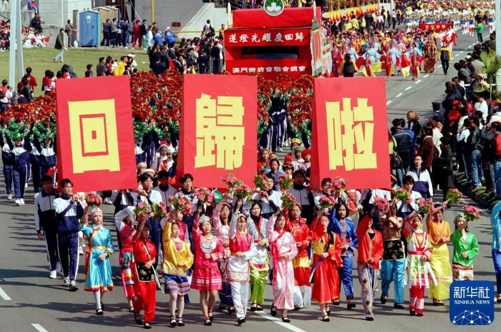1999年12月20日,澳门劳工子弟学校学生参加“迈向美好明天大巡游”。新华社记者 王毓国 摄