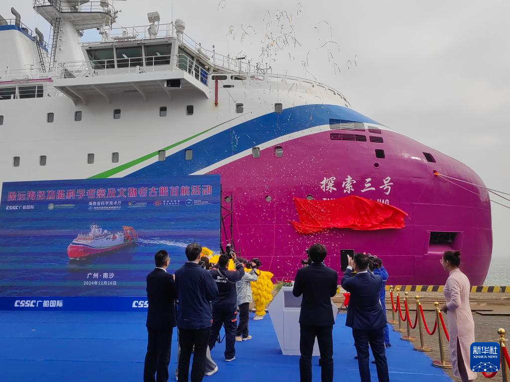 新华社广州12月26日电(记者田建川、张泉)深远海多功能科学考察及文物考古船“探索三号”26日在广州南沙交付。此船具备完全自主知识产权,是我国首艘具备全球(含极区)深远海探测和冰区载人深潜支持能力的综合科考船。